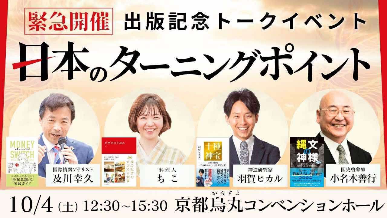 10/4(土) 出版記念トークイベント 「日本のターニングポイント」in 京都 開催が決定しました! 先日、大阪での 蔦屋書店さんでのイベントでは、 平日開催に...