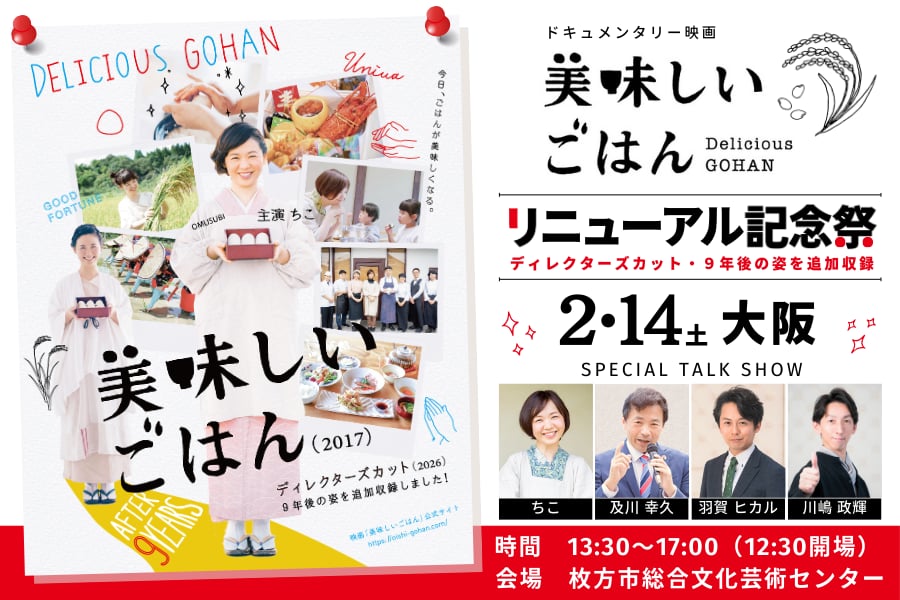 映画『美味しいごはん』上映&講演会 大阪・枚方市にて開催 4/27(日)大阪・枚方市にて 映画『美味しいごはん』上映会&ちこの講演会が開催されます。今ま...